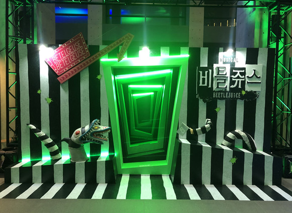 이는 본격 공연장에 들어서기 전 로비부터 느껴진다. 벽면에 비틀쥬스 속 주요 공간과 캐릭터 등을 담은 영상을 투사하고, 다른 한켠엔 포토존을 설치해 공연 시작 전부터 비틀쥬스 세계관에 관객 또한 직접 들어선 듯한 느낌을 연출했다.