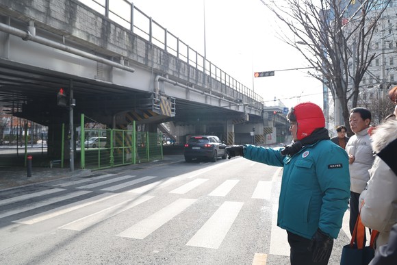 해당 구간은 신호등이 구조물에 가려 잘 보이지 않아 사고 우려가 제기된 곳으로, 박 구청장은 교통행정과·보행행정과·도로개선과 등 관계 부서와 함께 신호등 위치 조정 방안과 보행 환경 개선 방향을 논의했다.