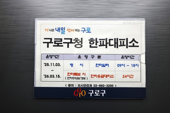 구로구 관계자는 “강추위에 선제적으로 대비하고 있으며, 한파특보 발효 시 주민 불편과 피해가 없도록 신속히 대응하겠다”며 “주민들께서는 가까운 쉼터를 적극 활용해주시길 바란다”고 말했다.
