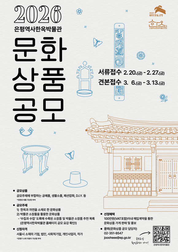 서울 은평구(구청장 김미경)는 오는 2월 20일부터 ‘2026 은평역사한옥박물관 문화상품 공모전’을 개최한다고 밝혔다.