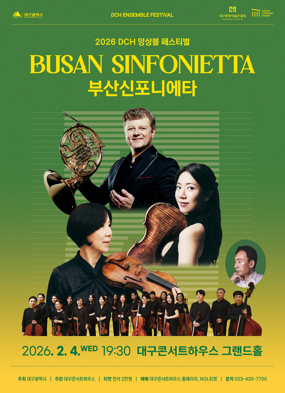 대구콘서트하우스(관장 박창근)가 주최하는 2026 DCH 앙상블 페스티벌이 오는 2월 4일(수) 저녁 7시 30분, 대구콘서트하우스 그랜드홀에서 부산신포니에타의 개막 공연과 함께 본격적인 막을 올린다. 이번 개막 무대는 창단 40주년을 맞은 부산신포니에타가 그간 쌓아온 깊은 내공을 선보이며 축제의 여정을 시작할 예정이다.