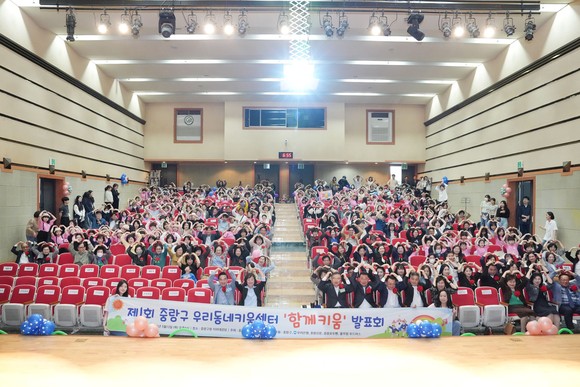 제1회 중랑구 우리동네키움센터 ‘함께 키움’ 발표회에 참석한 류경기 중랑구청장과 관계자들의 모습. 사진=중랑구청