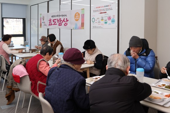 ‘주민참여 효도밥상’은 75세 이상 어르신을 대상으로 양질의 점심 식사는 물론 건강 관리, 법률·세무 상담까지 연계한 원스톱 어르신 복지 서비스로 새로운 돌봄 모델로 자리매김하고 있다.
