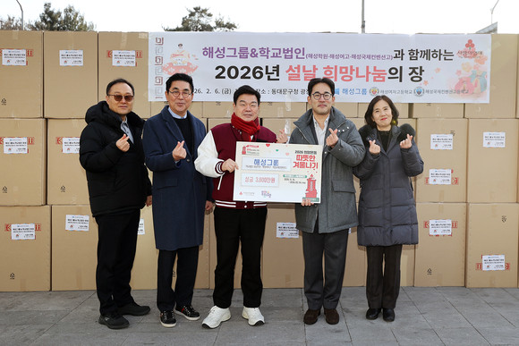서울 동대문구(구청장 이필형)는 6일 구청 앞 광장에서 해성그룹과 학교법인 해성학원(해성여고·해성국제컨벤션고) 관계자들이 참여한 ‘2026 설날 희망나눔의 장’을 열고 김 선물세트 1380개를 기부받았다고 밝혔다.