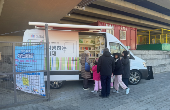 서울 서초구(구청장 전성수)는 2월 한 달간 지역 내 겨울 명소를 찾아가 주민들에게 독서의 즐거움을 선사하는 ‘여행하는 서재’ 운영에 나선다고 밝혔다. 여행하는 서재는 도서관을 직접 방문하지 않아도 일상 속 휴식 공간에서 자연스럽게 책을 접할 수 있도록 캠핑카를 개조해 만든 팝업 형태의 도서관이다.