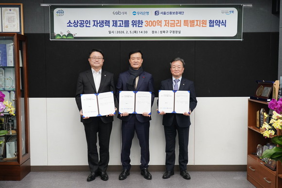서울 성북구(구청장 이승로)가 지난 5일 우리은행, 서울신용보증재단과 함께 ‘소상공인 특별융자 지원 업무협약’을 체결했다.