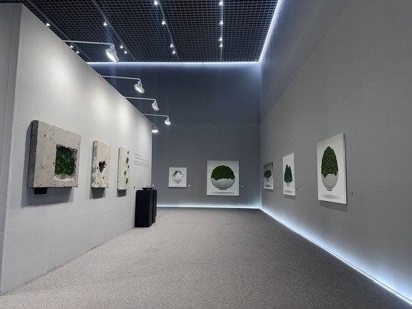 회화 작품 열여덟 점과 설치작품 두 점, 그리고 시멘트 레진과 그릇 이끼 작품 다섯 점이 전시 중이다. 이와 함께 이끼 분재 컬래버레이션 작품도 함께 선보인다. 전시장에는 고요하지만 웅장한 사운드가 잔잔히 깔리는데, 숲을 주제로 한 소리다.