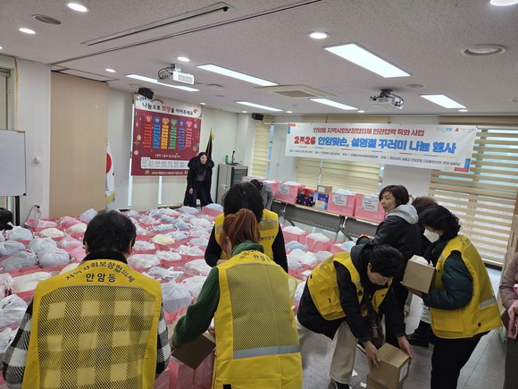 서울 성북구 안암동 지역사회보장협의체(위원장 유상진)가 지난 10일 저소득 취약계층을 위한 설 명절맞이 선물꾸러미 나눔 행사를 진행했다. 이번 행사는 명절을 홀로 지내거나 경제적 어려움을 겪는 이웃들이 넉넉한 설 명절을 보내길 바라는 마음으로 마련됐다.