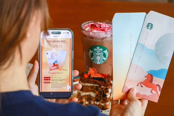 스타벅스는 붉은 말의 해인 병오년을 기념하기 위해 달리는 붉은 말이 디자인된 봉투와 일출을 형상화한 봉투를 각각 1매씩 2매를 세트로 구성했다. 한정수량 준비된 상품으로 이달 18일까지 전국 스타벅스 매장에서 ‘온 가족 추천 메뉴’를 파트너 직접 주문이나 사이렌 오더로 주문 시 품목당 1세트를 선착순 증정한다.