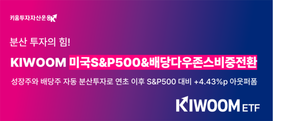 이 같은 흐름 속에서 S&P500과 SCHD에 구조적으로 분산 투자하는 ‘KIWOOM 미국S&P500&배당다우존스비중전환 ETF’도 성과 측면에서 두각을 나타내고 있다.
