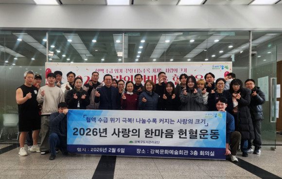 서울 강북구도시관리공단(이사장 김윤기, 이하 공단)은 임직원의 자발적 참여를 기반으로 한 ‘사랑의 헌혈운동’을 지속적으로 추진하며 지역사회 생명나눔 문화 확산에 앞장서고 있다고 밝혔다.
