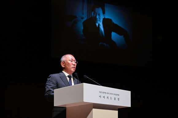 이날 행사에는 정의선 현대차그룹 회장을 비롯한 유가족과 임직원, 정관재계 인사 등 2500여명이 참석했다. 특히 소방공무원과 국가보훈부 관계자, 현대차 정몽구 재단이 후원하는 미래 인재 등 공익 기여자들을 초청해 창업회장의 인본주의 정신을 되새겼다.