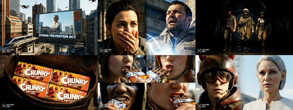 지난 4일 롯데웰푸드 공식 유튜브 채널 ‘맛깔스튜디오’를 통해 첫 공개된 스낵시네마 제1화는 영화 ‘패션왕’ 등을 연출한 오기환 감독의 작품 ‘바삭한 도시’다. 롯데웰푸드의 초콜릿 브랜드 ‘크런키’를 모티브로 한 이 작품은 소음을 철저히 통제당해 스트레스에 취약해진 가상의 세계를 배경으로 한다. 주인공이 크런키를 통해 잃어버린 일상의 활력과 자유를 되찾는다는 세계관을 AI 기술을 활용해 영상미로 구현해 냈다.