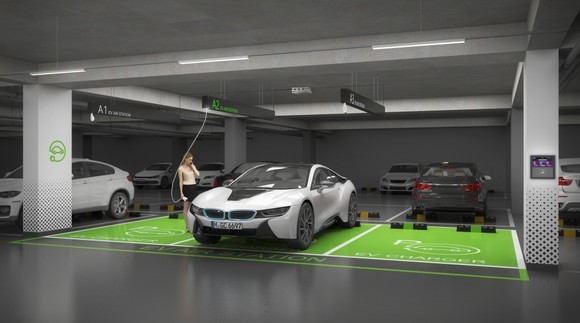 아파트 단지 주차장의 이 시스템은 분명한 장점이 있다. 충전시스템을 설치할 별도의 공간을 확보하지 않아도 된다. 그 점이 가장 먼저 머리에서 떠올랐다.