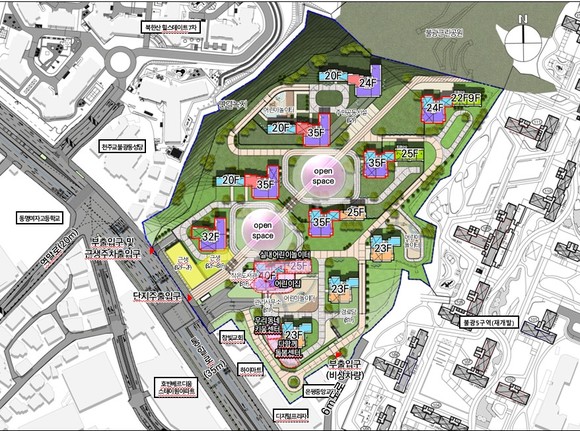 대상지는 3호선 불광역에 인접해 대중교통의 접근성이 우수하고, 불광근린공원 등 주변 녹지와도 가까워 쾌적한 주거환경을 누릴 수 있다.