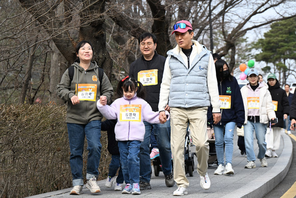 아빠단은 이날 발대식에서 아이와 함께 레크리에이션을 즐기고, 남산 하늘숲길을 걸었다.