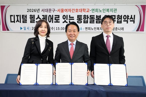 서울 서대문구(구청장 이성헌)는 최근 연희노인복지관 3층 ‘청춘나래’에서 서울여자간호대학교(총장 김숙영), 연희노인복지관(관장 조성준)과 함께 ‘디지털 헬스케어 기반 통합돌봄 업무협약’을 체결했다고 16일 밝혔다.