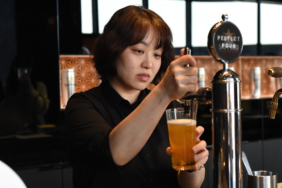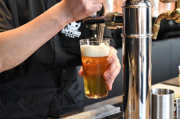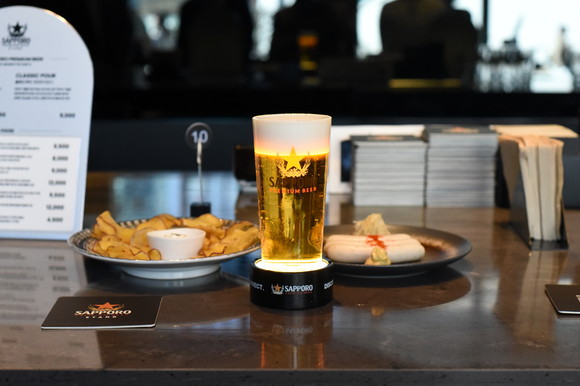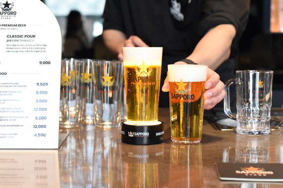 이곳에선 ‘퍼펙트 푸어(pour)’와 ‘클래식 푸어’ 두 가지 맛의 삿포로 맥주를 경험할 수 있다. 퍼펙트 푸어는 맥주와 거품의 비율이 완벽히 7대 3을 이룬다. 탭(tap)을 앞으로 뒤로 당기고 밀며 맥주와 거품을 따로 담아낸다. 특히 ‘3C’를 철저히 지키는데, 촘촘한 거품의 크리미(Creamy), 정성스럽게 세척한 클리어(Clear), 꼼꼼한 온도관리의 ‘콜드(Cold)’를 줄여 말하는 것이다.