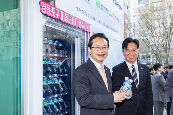 서울 영등포구(구청장 최호권)는 지난 20일, 김영훈 고용노동부 장관이 당산동에 위치한 ‘이동노동자 쉼터 1호점’을 방문해 현장을 살피고, 관계기관과 함께 이동노동자 온열질환 예방을 위한 생수 나눔 업무협약을 체결했다고 밝혔다.