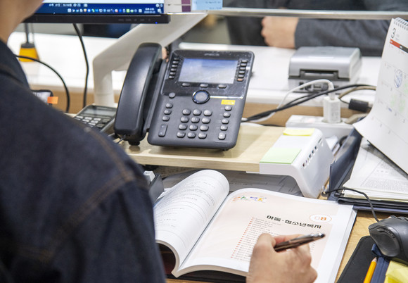 용산구청 사회복지 담당 공무원이 용산복지정보편람을 보고 있다. 사진=용산구청