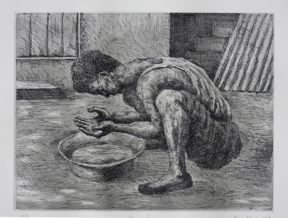 다섯 번째 섹션 ▲‘나는 ( ) 실천하는가’에서는 민중미술 작가이자 ‘옆집 예술가’로서 일평생 예술의 사회적 기능과 역할을 고민해 온 김정헌의 예술적 실천을 살펴본다. 〈오직 나의 기억 속에서는〉(1995), 〈국가의 초상〉(2014)을 포함하여 2024년 경기도미술관에 기증된 그의 작품을 중심으로 “큰 그림, 작은 그림”과 “영매로서의 미술”을 화두로 삼아 미술이 사회적 행위로 기능할 수 있음을 보여준다. 예술과 삶이 분리되지 않았던 그의 작업은 오늘날에도 유효한 사회적 함의를 지닌다.