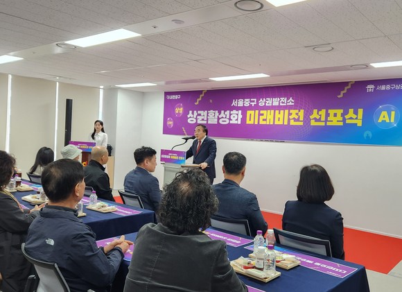 서울 중구는 ‘(사)서울중구상권발전소’(이사장 김정안, 이하 상권발전소)가 지난 3일 을지누리센터에서 ‘상권활성화 비전 선포식’을 열었다고 5일 밝혔다. 행사에는 상인, 주민, 전문가 등 50여 명이 참석해 중구 상권의 미래 방향을 공유했다.