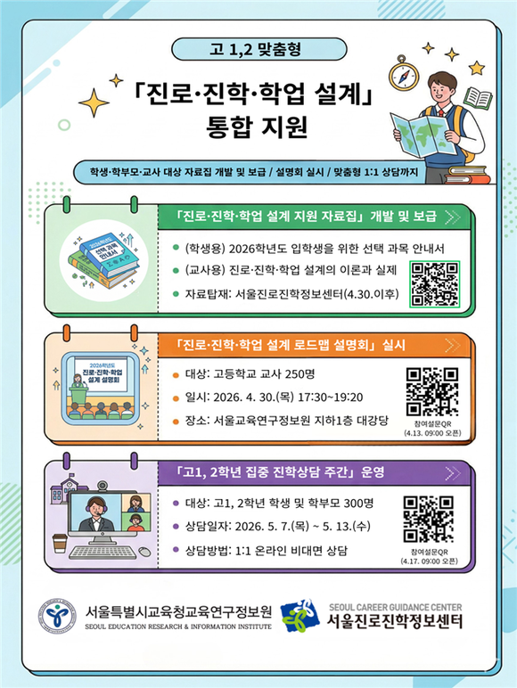 설명회는 4월 30일(목) 서울교육연구정보원에서 개최하며, 진로 탐색부터 학업 설계, 진학 지도까지 현장에서 즉시 적용가능한 가이드를 제공한다.