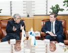 하동근 한국지역난방공사 사장(왼쪽)과 빌레 타비오 핀란드 국제통상개발장관이 대화를 하고 있다. 사진=한국지역난방공사한국지역난방공사(사장 하동근)가 9일 경기도 성남시 본사에서 빌레 타비오 핀란드 국제통상개발장관, 유리 예르비아호 주한핀란드 대사 등과 GX(Green Trans…