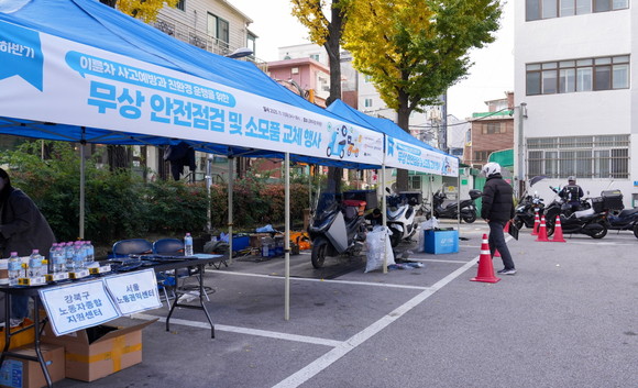 배달 종사자의 노동권 보호와 교통안전 강화를 위해 마련된 이번 캠페인은 이날 오전 9시부터 오후 4시까지 구청 광장에서 진행됐으며, 관내 배달 이륜차 100대가 무상 점검을 받았다.
