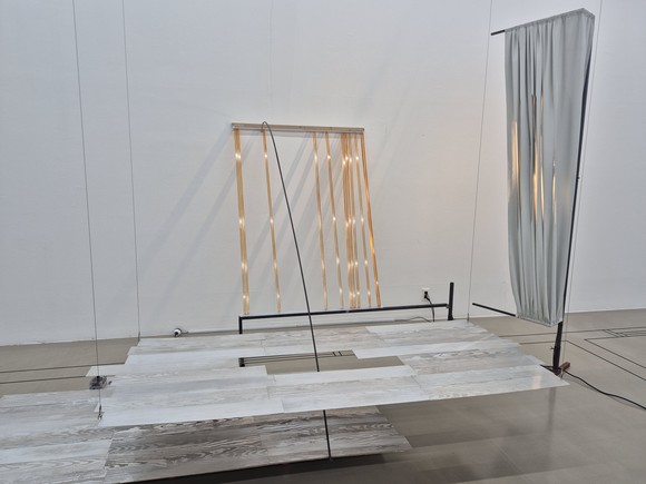 불안정한 정서를 공간적 장면으로 시각화한 설치 작업을 선보이는 서희 작가는 유학을 목적으로 떠났던 독일에서 현재까지 오랫동안 지내오면서 느꼈던 불안정한 감각과 일상에서 느끼는 사물과 자신의 관계를 조형 언어로 번역했다. 작가는 움직이는 바닥, 낯설게 느껴지는 차가운 감각의 바닥, 사물 안에서 불편함을 느끼는 상황을 통해 이동 가능성을 품은 임시적 삶을 표현했다. 결국 언제나 불안하고 언제 떠날지 모르는 삶을 사는 한 개인의 정착할 수 없는, 넘어설 수 없는 감각을 펼쳐 보인다.