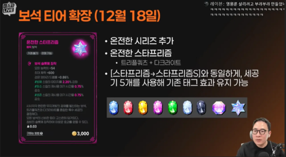 문제는 시즌1 시작과 함께 보석 아이템의 최상위 티어 ‘스타프리즘S’를 출시한 지 불과 두 달 만에, 그보다 높은 단계를 또 내놨다는 점이다. 시즌1 초기에 출시된 종결급 아이템 가치가 충분히 유지되지 못한 채, 추가 강화가 필요해진 셈이다.