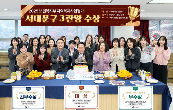 서울 서대문구(구청장 이성헌)는 최근 보건복지부의 ‘2025년 지역복지사업 평가’ 결과 총 3개 분야에서 대상(大賞) 등을 수상하며 복지 선도 지자체로 평가받았다고 9일 밝혔다.