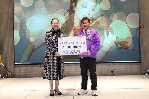 서울 동대문구(구청장 이필형)는 지난 8일 열린 동대문구상공회 ‘최고경영자과정 24기 수료식 및 송년의 밤’ 행사에서 동대문구상공회(회장 이희순)로부터 이웃돕기 성금 1천만 원을 기탁받았다고 9일 밝혔다.