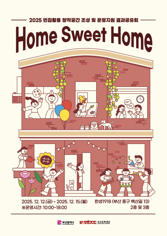 부산문화재단(BSCF, 대표이사 오재환)은 오는 12월 12일(금) 한성1918(중구 동광동) 에서 「2025년 빈집활용 창작공간 조성 및 운영지원」 사업 결과공유회를 개최한다.