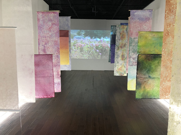 모네의 '수련' 그림을 연상케하는 한지 작업들이 설치돼 있다. 사진=김금영 기자