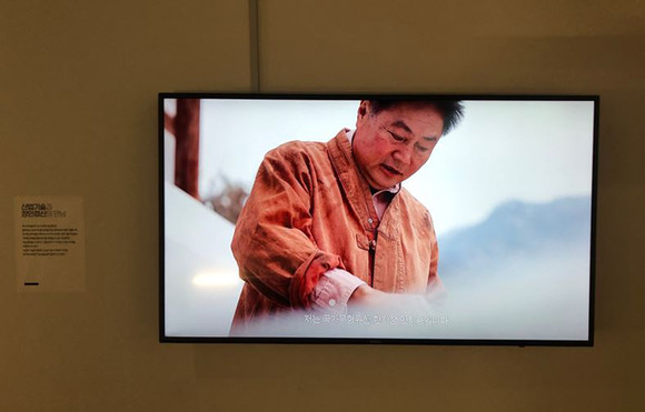 안치용 한지장은 포스코그룹으로부터 건조기를 지원받아 이번 전시를 준비할 수 있었다. 사진은 인터뷰 영상. 사진=김금영 기자