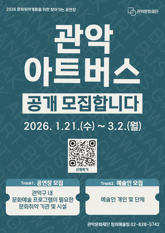 재단은 지역 시설과 예술인의 관심에 힘입어 2026년 ‘관악아트버스’를 한층 확대 운영한다. 트로트·매직쇼 등 대중예술 중심으로 운영해 온 찾아가는 공연장 ‘관광(光)버스(관악구 광란의 버스)’의 성과를 바탕으로, 2026년에는 국악·클래식·낭독극 등 순수예술 장르까지 폭넓게 확장해 보다 다채로운 무대를 선보일 계획이다.