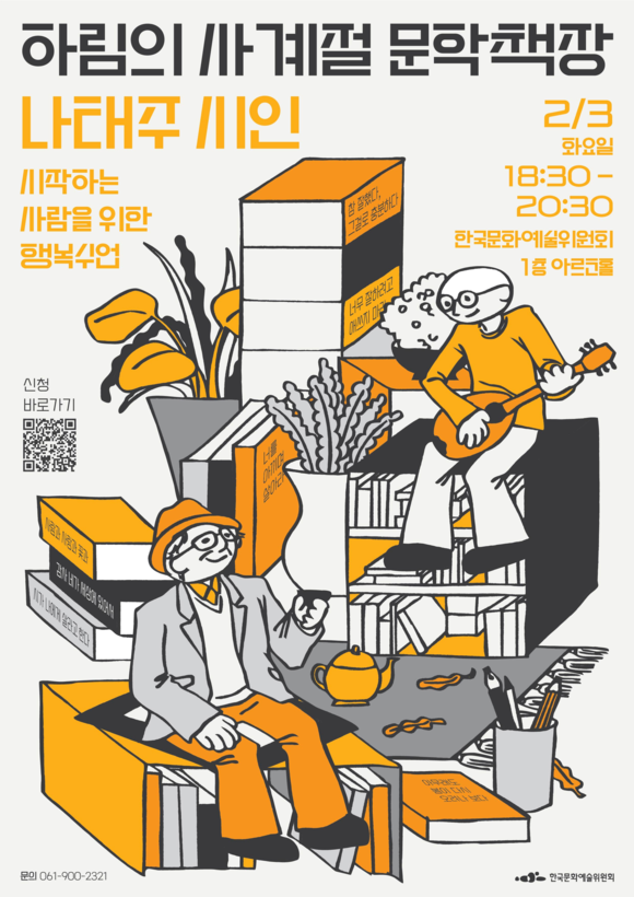 한편, 아르코는 작가와 독자가 직접 만나는 축제인 <문학주간>을 매년 개최해 왔다. 대학로를 중심으로 한 주요 행사와 더불어 전국의 문학시설과의 연계 프로그램을 통해 사업의 범위를 꾸준히 넓혀왔다. 이번 <하림의 사계절 문학책장> 역시 <문학주간 2026>의 지역 프로그램 일환으로 마련됐다.
