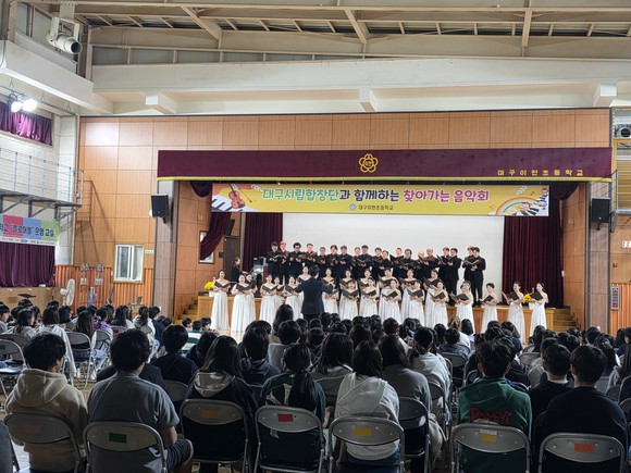 대구시립합창단은 학교 현장을 찾아가는 “스쿨콘서트”를 통해 합창, 독창, 중창 등 다양한 형식의 공연을 선보인다. 한국가곡부터 오페라·뮤지컬, 가요, 민요까지 폭넓은 레퍼토리로 친숙한 합창 무대를 제공한다.