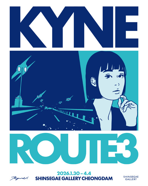 이번 전시는 작가의 영감의 원천인 후쿠오카의 국도 3호선 ‘루트(ROUTE) 3’을 제목으로 삼아, 키네의 시그니처 도상인 여성 인물과 작가가 도시를 통과하며 포착해 온 장면을 함께 제시한다.