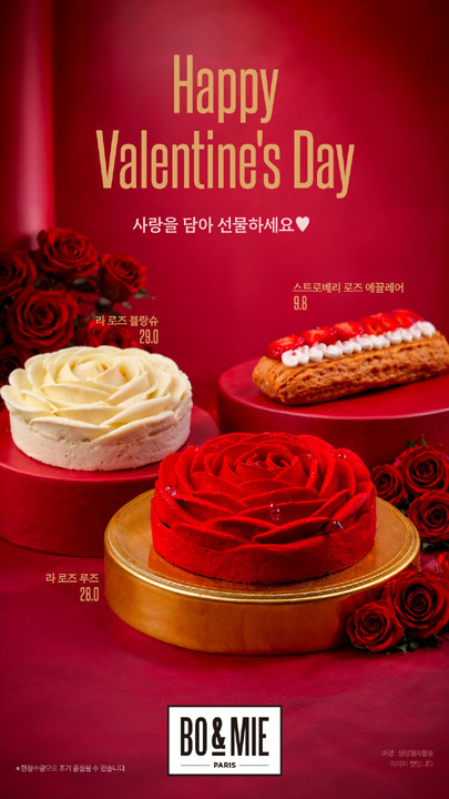 보앤미는 발렌타인데이 신메뉴 출시를 기념해 오는 22일까지 라 로즈 2종 구매 고객 1명에게 추첨을 통해 오리지널 레시피로 정성껏 만든 한정판 ‘라 로즈 핑크’ 에디션을 증정하는 이벤트를 진행한다.