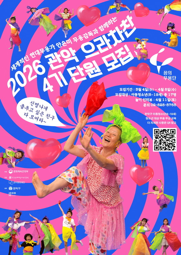관악문화재단(대표이사 소홍삼)이 4월 8일(수)까지 2026 꿈의 무용단 ‘관악 으라차찬’ 4기 신규 단원을 모집한다.