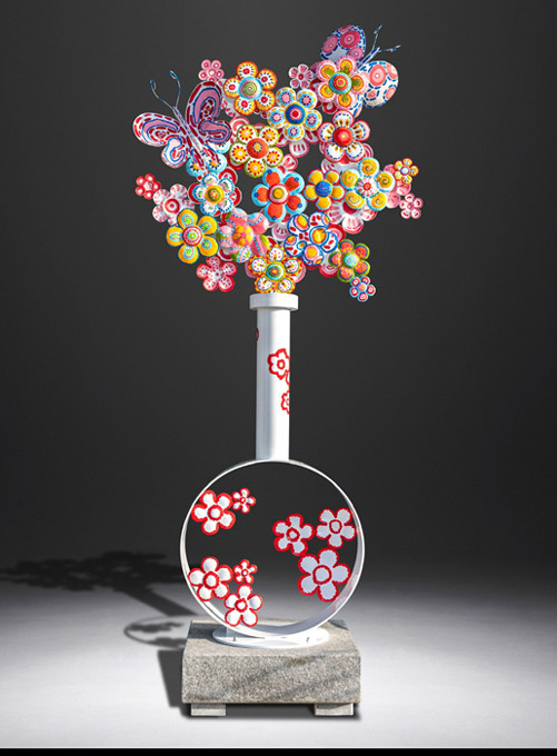 박선영, ‘꽃이 있는 정물’. 스테인리스 스틸·현무암, 1400x780x3000. 2025. 사진=크라운해태제과