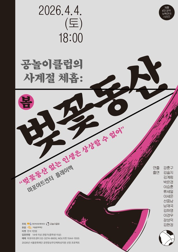 서울 마포문화재단(대표이사 고영근)과 공놀이클럽(대표 강훈구)은 4월 4일 마포아트센터 플레이맥에서 낭독연극 <공놀이클럽 사계절 체홉 : 봄 – 벚꽃동산>을 공연한다.