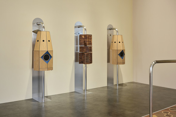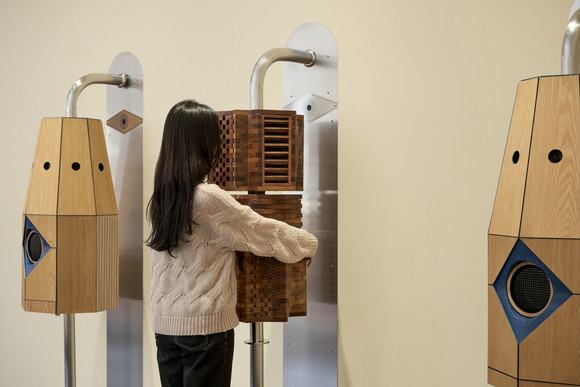 이번 전시에서는 나무로 제작된 조각과 사운드, 향을 활용한 설치 작품 등 총 8점의 신작을 선보인다. 〈등 굴리기 스피커〉와 〈등 굴리기 향 분사기〉는 관람객이 직접 몸을 밀착해 등을 굴리는 작품으로, 지압을 하며 음악을 듣거나 향기를 맡을 수 있다. 또한〈밸런스 보드 – 균형 연습〉은 보드 위에 올라 몸의 중심을 잡고 쇠구슬을 목표 지점으로 옮기도록 유도한다. 이러한 경험은 시각 중심의 감상에서 벗어나 몸의 감각을 전면에 드러내며, 미술관에서의 감상 경험에 새로운 관점을 제시한다.