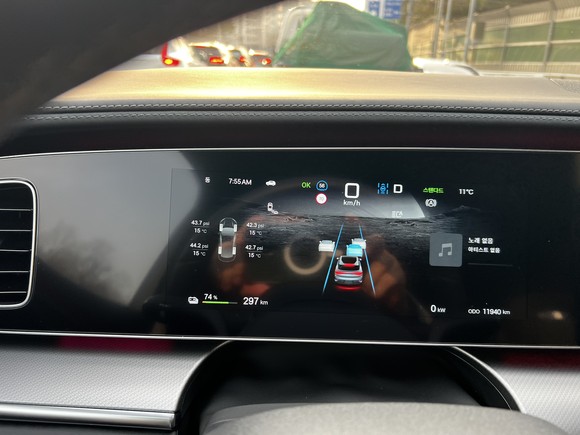 다만 한 가지 차이점이 있다. 정지(3초 이상) 후 자동 출발이 되지 않고, “출발하세요” 메시지만 출력된다. 이 때 엑셀을 살짝 건드리면, 다시 앞 차량을 잘 따라간다. 테슬라 오토파일럿의 앞차를 따라가는 자동 출발 기능은 출퇴근 시 강변도로에서 매일 애용하고 있어서, 씨라이언7에서는 다소 불편함을 느낄 거라 생각했지만, 실제로 아침 출근길 정체 구간에서 사용해본 결과, 별다른 불편함을 느끼지 못했다.