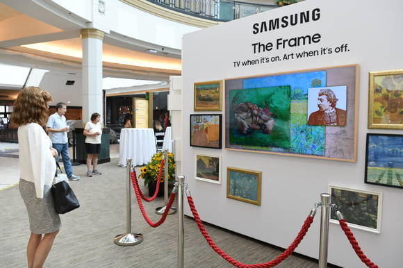 미국 필라델피아에 위치한 쇼핑몰 ‘킹 오브 프러시아’에서 관람객들이 삼성전자의 라이프스타일 TV ‘더 프레임’을 통해 반 고흐의 생애와 작품을 감상하고 있다. (사진 = 삼성전자)