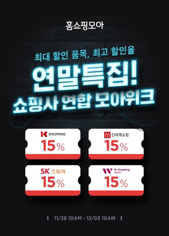 올해 마지막으로 진행하는 ‘연합 모아위크’는 홈쇼핑모아가 T커머스 채널과 함께 1주일간 할인 혜택을 제공하는 이벤트다. 이번 모아위크에는 K쇼핑, 신세계TV쇼핑, SK스토아, 더블유쇼핑 등 총 4곳의 T커머스가 참여한다.