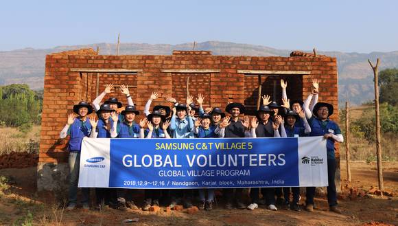 삼성물산은 지난 9일부터 7일 동안 뭄바이 시에서 동쪽으로 약 100km 가량 떨어진 난드가온 마을에서 주택 신축과 희망티셔츠 만들기, 미니 운동회 등 다양한 봉사활동을 하고 삼성마을 준공식을 진행했다.