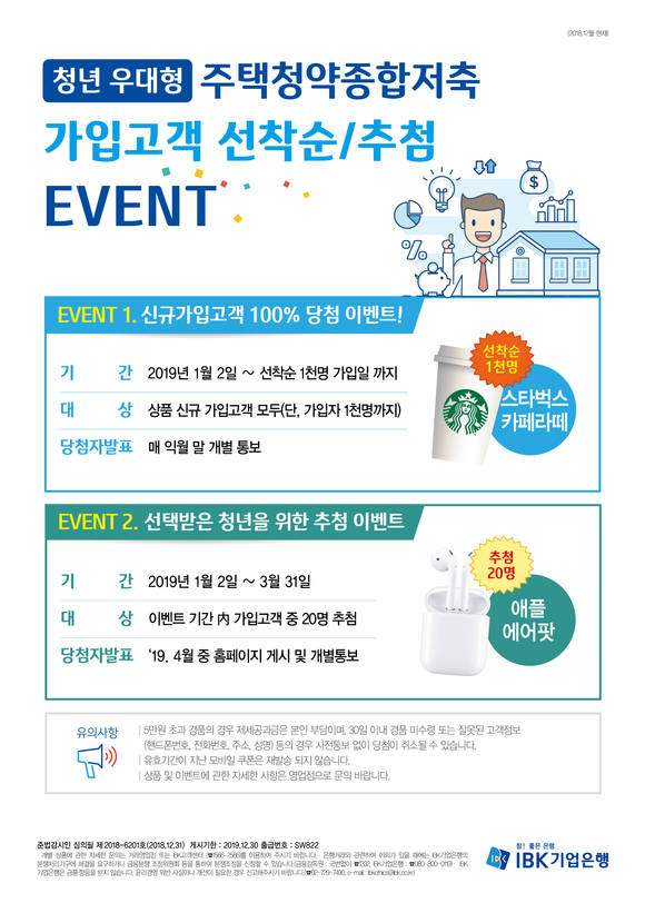 IBK기업은행이 ‘청년 우대형 주택청약종합저축’의 가입대상 확대를 기념해 오는 3월 31일까지 가입고객을 대상으로 이벤트를 실시한다고 9일 밝혔다.